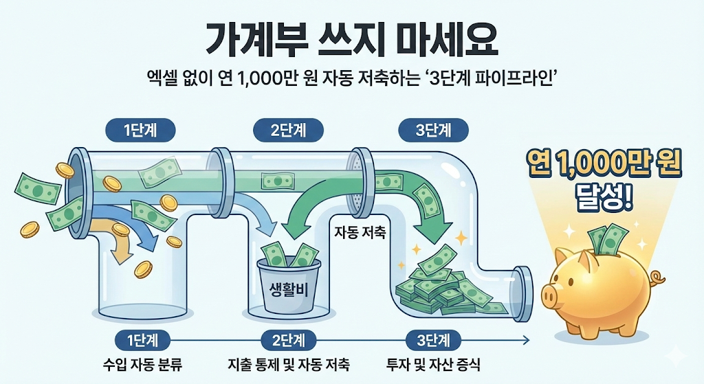 가계부 쓰지 마세요": 엑셀 없이 연 1,000만 원 자동 저축하는 '3단계 파이프라인'