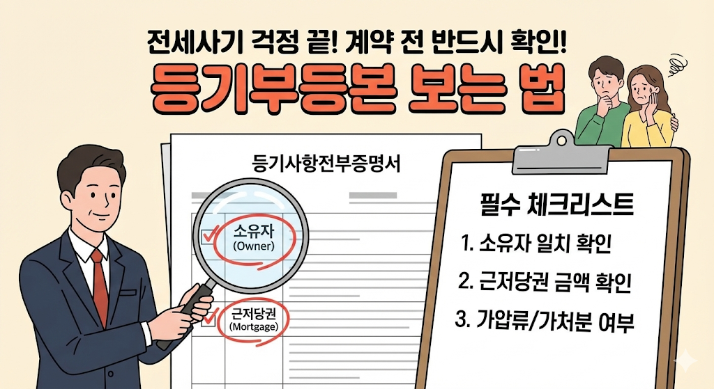 전세사기 걱정 끝! 계약 전 반드시 확인해야 할 '등기부등본' 보는 법 (필수 체크리스트)