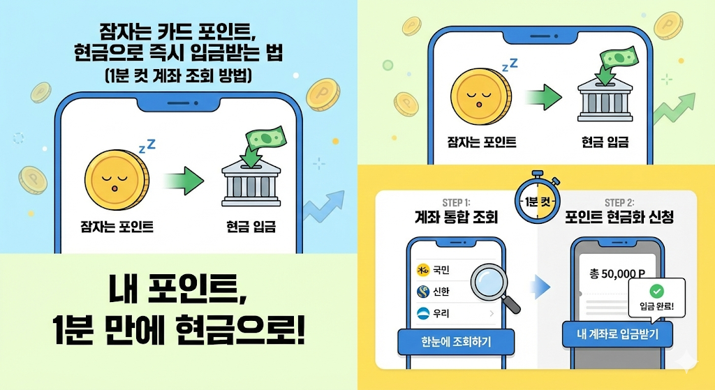 잠자는 카드 포인트, 현금으로 즉시 입금받는 법 (1분 컷 계좌 조회 방법)