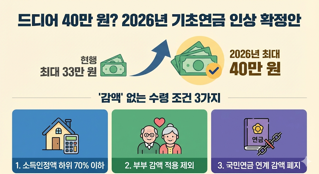 드디어 40만 원? 2026년 기초연금 인상 확정안 & '감액' 없는 수령 조건 3가지