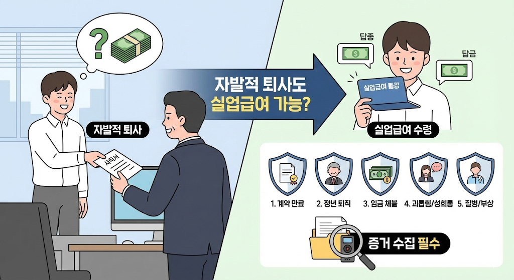 자발적 퇴사도 실업급여 받을 수 있다? 심사 통과하는 예외 조건 5가지 (증거 수집 필수)