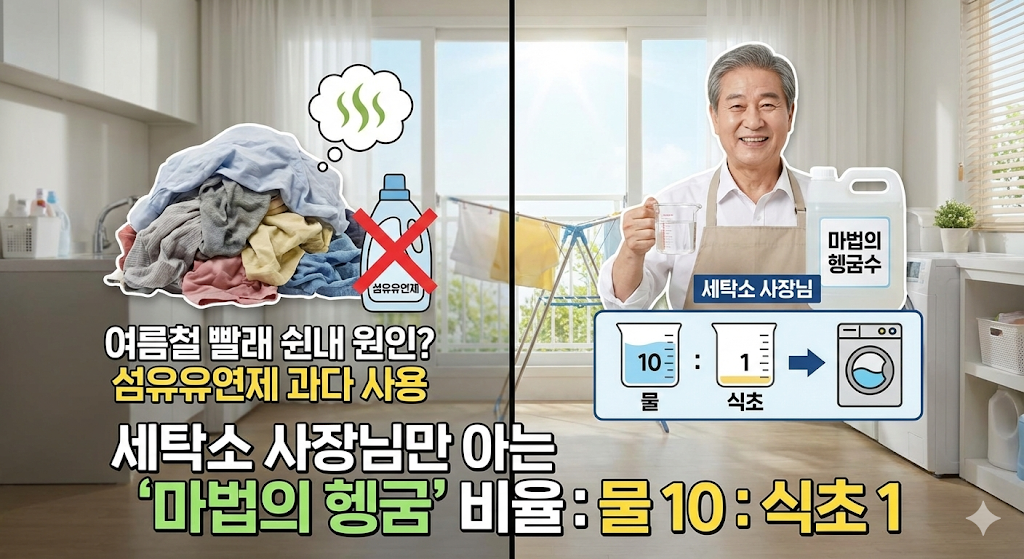 여름철 빨래 쉰내, 섬유유연제가 원인이다? 세탁소 사장님만 아는 '마법의 헹굼' 비율